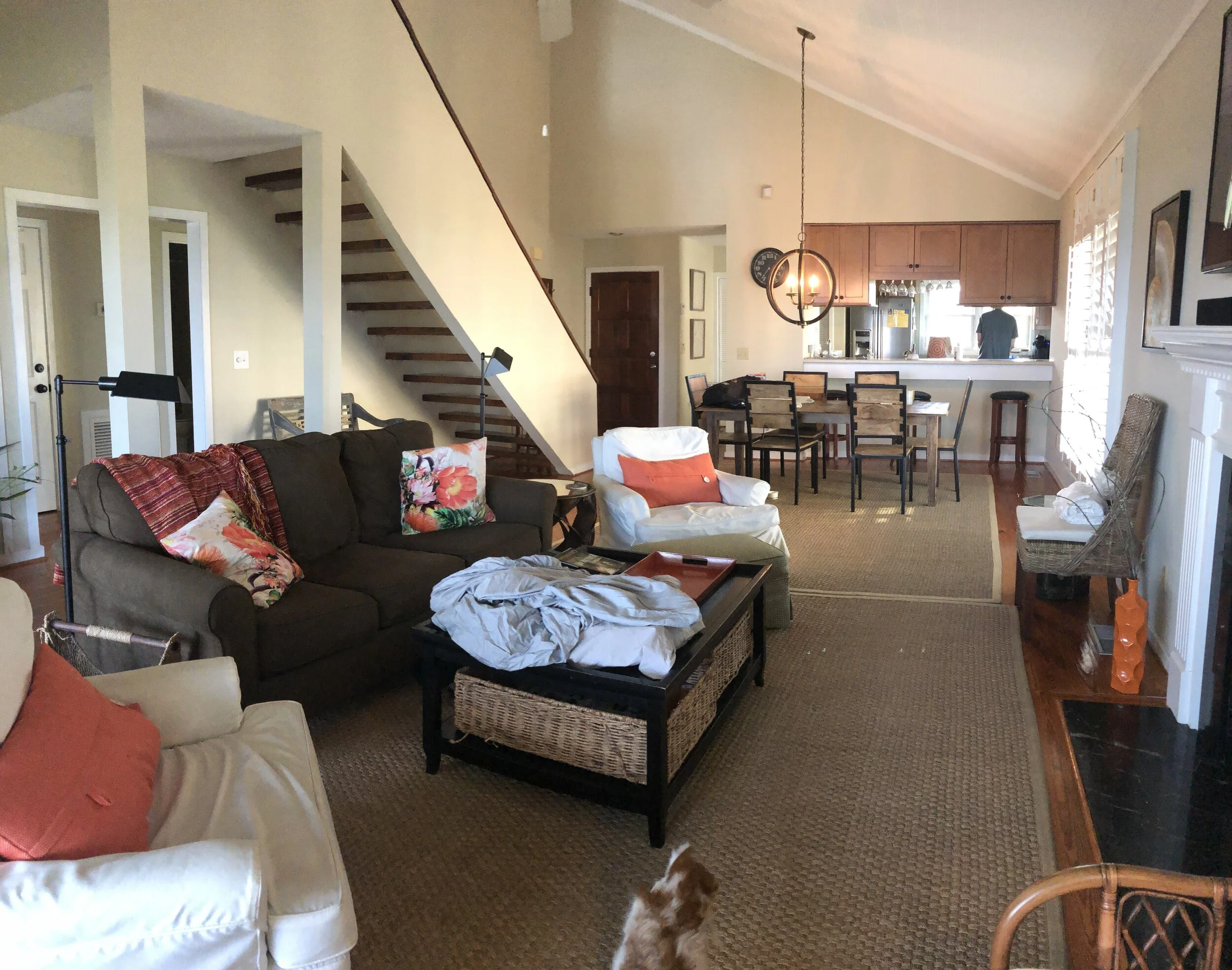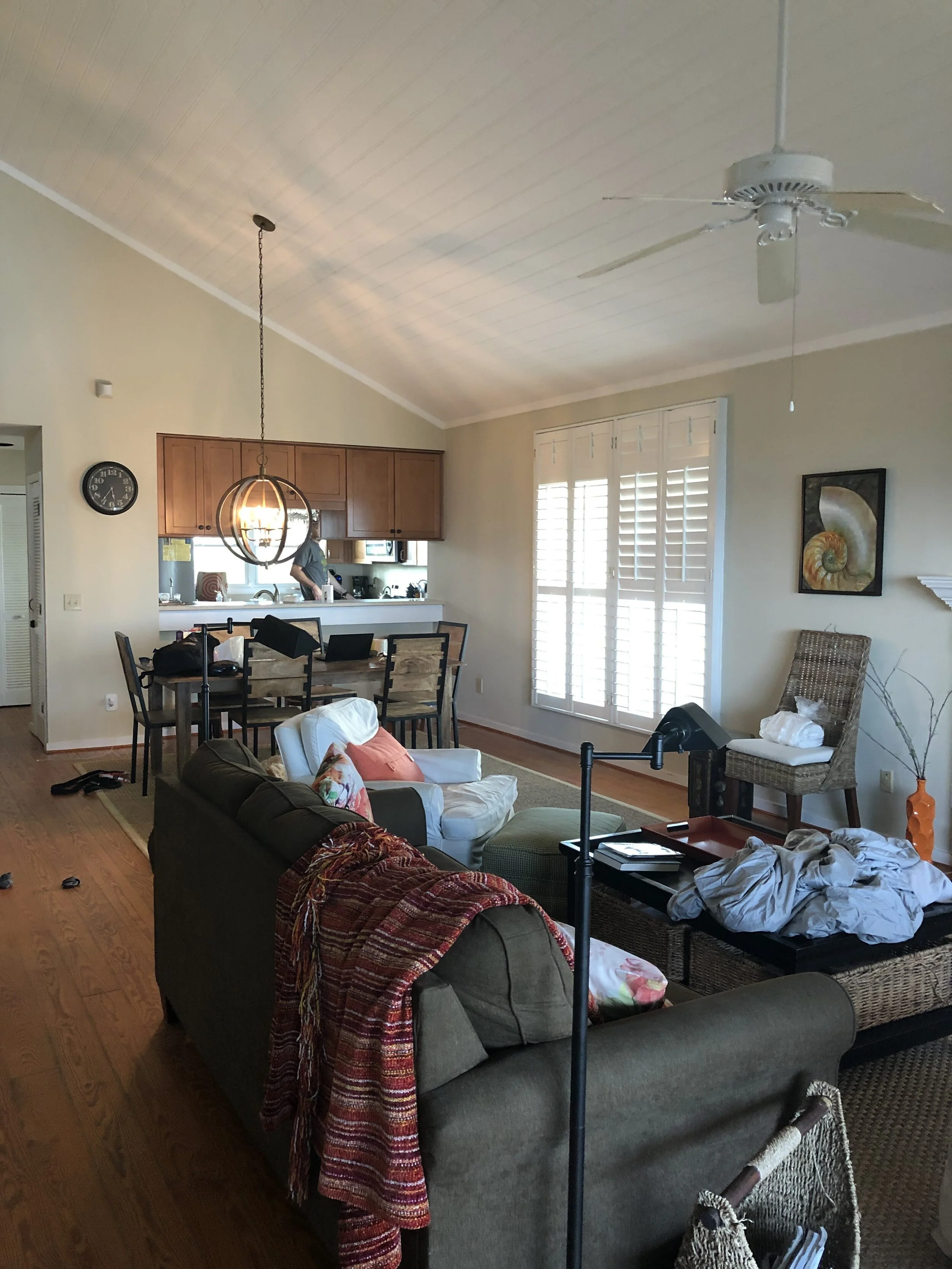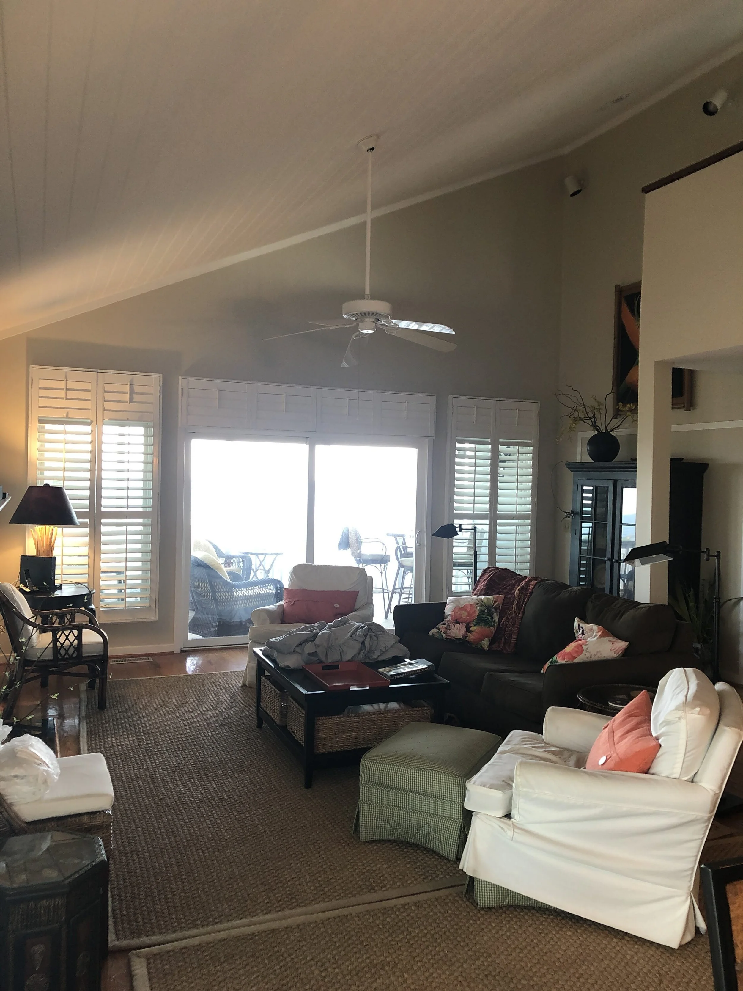 The goal for this 1986 Isle of Palms beach house was to match the outside wow to the inside. This house, formally a rental, had tired furnishing that did not compliment the space. We refreshed the interior with paint, beadboard ceilings, new lighting, and fan fixtures in each room Additionally, dated cabinets were removed opening the view from the kitchen to the ocean. Each room was updated with new furniture, rugs, art, and bedding.