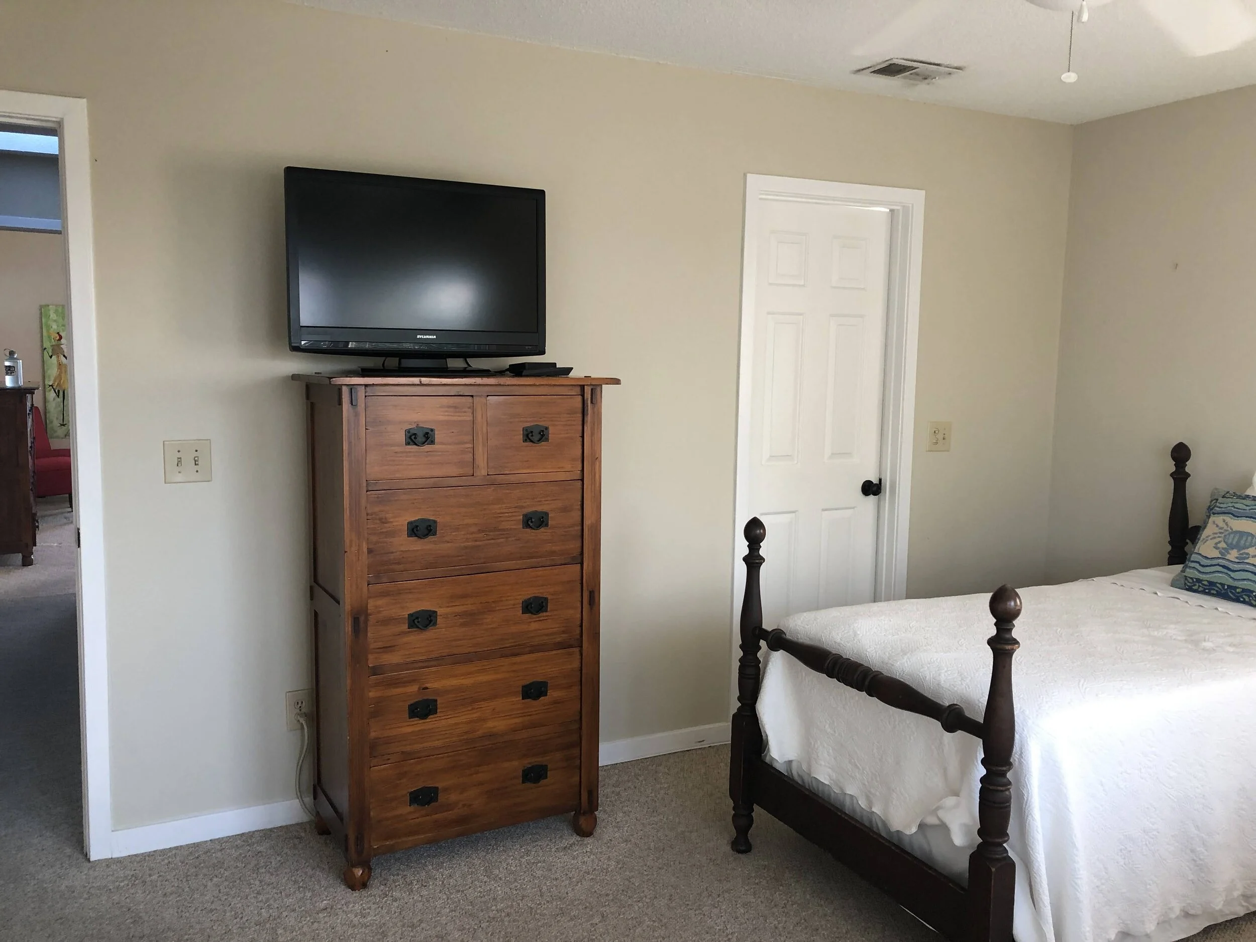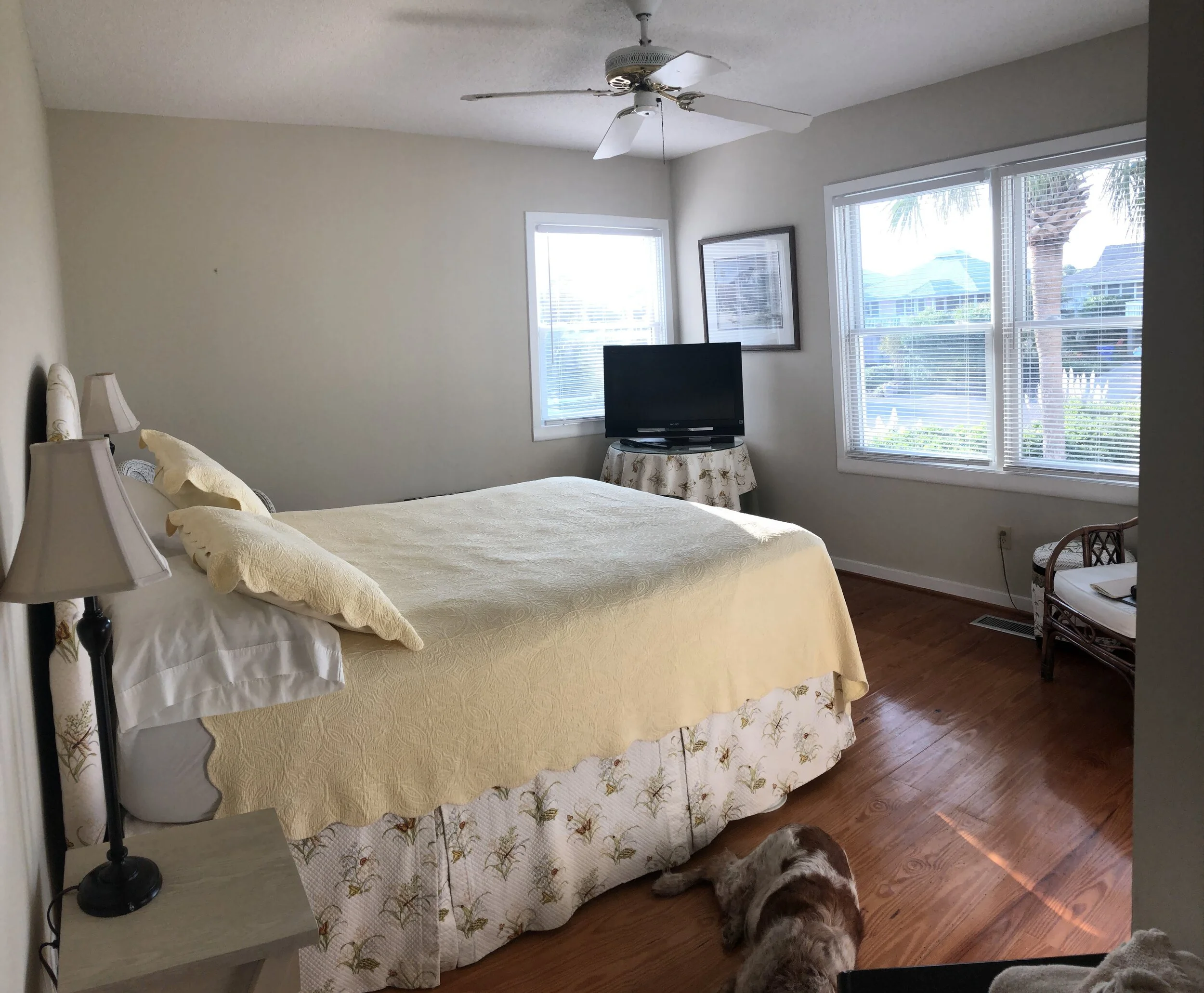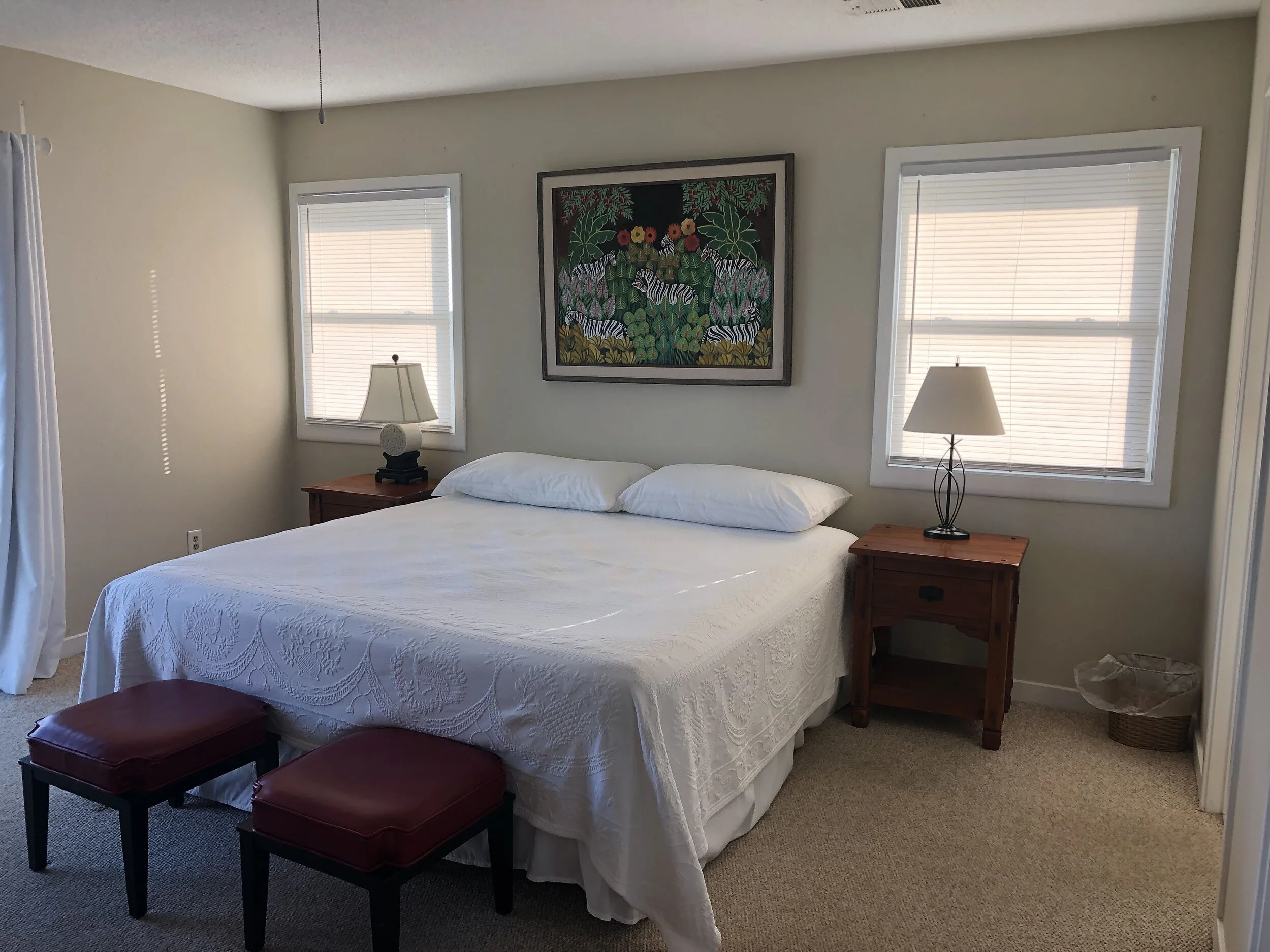 The goal for this 1986 Isle of Palms beach house was to match the outside wow to the inside. This house, formally a rental, had tired furnishing that did not compliment the space. We refreshed the interior with paint, beadboard ceilings, new lighting, and fan fixtures in each room Additionally, dated cabinets were removed opening the view from the kitchen to the ocean. Each room was updated with new furniture, rugs, art, and bedding.
